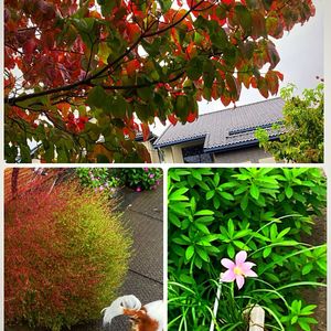 深まりゆく秋 ①わが家の紅葉をアップ🍁 ②ドウダンツツジも紅葉が進みました❣️ ③朝日に煌めくシャラの木 ④コキアもマゼンダピンクに色づきました ➄愛しのピンクルルビー 🏷️真っ赤な火曜日に参加します😊