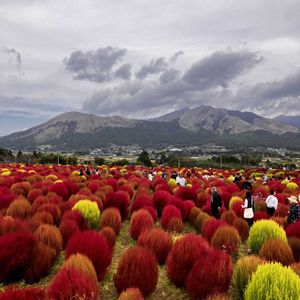 こんばんは♪🤠 お疲れ様です♪♡♡♡🌸 秋🍂🌸🌺真っ赤か良いですね 今日は朝からバタバタ南阿蘇に まっしぐら 現地に着くやら わー 人混み わーコキヤが お待ちかね 横手にはドックランも あり楽しめましたよ♪ 背景には 高岳 中岳 杵島岳根子岳 俵山 など見渡せ 絶景の景色が素敵ですよね💓