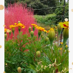 マリーゴールド越しに見える 真っ赤に色づいたコキア🌳