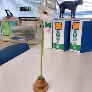 今日の一花。昔ながらのオフィスでも、一本あるだけで明るくなりますね。(ピントが葉っぱに合ってしまっていますね...pic頑張ります^_^)