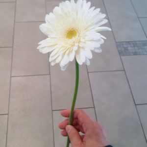 555花目✨ 大輪のガーベラを追加 目の覚めるような白🍀 4/20@天神ソラリア2階 品種名は忘れました。