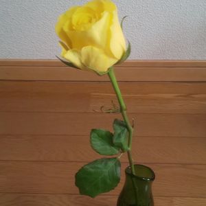 516花目✨ バラ トプソンは自宅へ 蛍光色の明るい黄色🍀 12/27@自宅リビング 職場の花たちも自宅に連れて帰りました