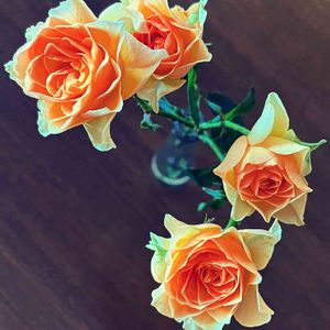 525花目✨ 初めましてのバラ アミナは自宅へ 発色の良いオレンジと くっきりと強い香り🍀 1/14@自宅リビング