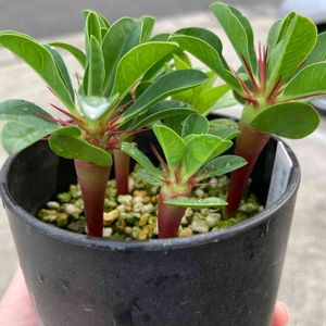 これもポットのサリコルニオイデスらしきもの🌵 タグのあるのと同じ形の葉だったから多分そうなのだろうけど、タグのある方は微妙に紫がかってたんだよなー🤔
