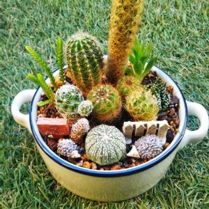 玄関前が賑やか🤩 約4ヶ月前に作った寄せ植え… サボテンたちが 少しだけ大きくなって いい感じになってる🤓 動物たち、、窮屈そう(笑)