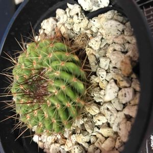 Astrophytum ornatum 般若 【ミニサイズ サボテンの育て方】 アストロだけど兜なんかと違ってめちゃくちゃ暑さ、寒さに強い! 面倒な世話なんて 全く 必要なし まさに 男前サボテンの代表格 2年前に 2㎝くらいで うちに来ました。ミニサイズを育てると 成長過程が観察できて 非常に楽しい 😊今では直径15㎝ かなり早い スピードで成長します👍 そこで 般若を例にあげて ミニサイズサボテンの育て方です 😁 【水やりについて】 ミニサイズは 貯水する力が弱いので 回数 多目に水をあげます 極小サイズのうちは水切れが続くとトゲ座ごとトゲが抜けてしまうことがあります。😅 【植える鉢について】 鉢が大きいと 根がはりません 株に対して1.5倍の大きさがベスト 鉢に沿って根が張りますよ😃✋ 【土について】 ミニサイズのうちは 特にこだわる必要がありませんよ 僕は 赤玉小粒、軽石小粒と 花の培養土を1:1:1にしてます 【肥料について】 よく サボテンは肥料は必要としないとありますが 肥料は必要不可欠です。ミニサイズの時のオススメ はハイポネックスです 根張りの必要肥料はカリなので 特に多く含まれてます 【成分】チッ素6.5:リン酸6:カリ19 無ければ マガンプKで大丈夫🙆♂️ カリを多くいれると 暑さ 寒さの 抵抗力がつきますよ👍 【根元が茶色】 特にアストロフィツムは 少し大きくなると 根元が茶色に 変色します。これは 老化現象 まったく心配なく 気になるようなら 植え替えの時に水はけのいい土に変色した部分が埋まるように植え替えればOKです。😃👍 こんな感じで ミニサイズのサボテン🌵は育てています。 次は 花を咲かせる 植え替えの 仕方を書いてみようかな😊