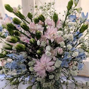 𖤣𖥧𖥣。𖥧𖧧📛教えてください(❁ᴗ͈ˬᴗ͈)𖤣𖥧𖥣。𖥧𖧧 💒一週間過ぎたけど。。。 元気な花々サンたち୧⃛((๑ ˙˘˙))୨⃛𓂃𓂂ꕤ*.゚ No.① 👰dressブーケのオンシジューム💐 やっぱり蘭は長持ちするねっ(*˘︶˘人)♡ No.② 🤵♂️ブートニアも✨ 他の花々サンたちも✨ まだまだ飾れる花々を 花瓶🏺に挿してます(( ˙˘˙人))♡ No.③ 真っ赤なシンビジューム✨ このコもほんと元気っ(*'∀'人)♡ No.④ 👰白無垢用ブーケの薔薇をドライ💐に✨ 淡いピンク🩷の薔薇と淡いブルーのデルフィニューム🩵好きな色の組み合わせ( *^^人)♡ No.⑤ 𖤣𖥧𖥣。𖥧𖧧2種・📛教えてください(❁ᴗ͈ˬᴗ͈)𖤣𖥧𖥣。𖥧𖧧 ガーベラと一緒に挿してある *奥⇒の𖥧𖥧𖥧𖥧𖥧𖥧 《フサフサした"麦みたい"なコ》𖥧𖥧𖥧𖥧𖥧𖥧 と *手前⇒の𖤣𖤣𖤣𖤣𖤣𖤣 《まるで"造花みたい"な白いコ》𖤣𖤣𖤣𖤣𖤣𖤣 *:ஐ(●˘͈ ᵕ˘͈)よろしく おねがい します(˘͈ᵕ ˘͈●)ஐ:* 《フサフサした"麦みたい"なコ》𖥧𖥧𖥧𖥧𖥧𖥧 ⬇️ ちどりサンに《マルルットウ》と教えて頂きました❣️ ありがとうございますpeco( ᴗ͈ˬᴗ͈)" 花言葉⇒《幸運✨》だそうです((*´˘` ))キュン🍀 《まるで"造花みたい"な白いコ》𖤣𖤣𖤣𖤣𖤣𖤣 ⬇️ sasukemamaさんに《ベロニカ》と教えて頂きました❣️ ありがとうございますpeco( ᴗ͈ˬᴗ͈)" 紫のベロニカサン我が家の庭に植えてるのに全く気付きませんでした(^^;💦ww