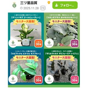 モニター当選しました……たぶん。 箱には植物が入ってたのみで、いつもの「当選おめでとうございます」的な紙が入ってませんでした。 GreenSnap様からの荷物だし、この植物のモニターに応募した記憶があるので、モニター当選したということでしょう。 ポットに植物のラベル(札?)も付いてませんでした。 タグをどうすれば良いか分かりませんし、植物の名前も分からなかった(忘れてた)ので、【モニター】で検索して、他の方の投稿を確認。どの人にも紙は入ってなかったようです。 植物の名前は ディフェンバキアクールビューティー のようです。 タグも一通り真似してみます。 葉の模様が美しい😊 豊明市場 三ツ星品質からのモニターに関するタグなどの投稿があると良いのですが。 心当たりがあるとはいえ、モニター当選であるかどうかの紙も何もない植物だけの荷物は怖いです。 モニター投稿頑張ります。(……で良いのですよね?)ありがとうございます。 モニター当選の度に思うことなのですが、モニターに関する情報(タグとか期間とかの説明)を投稿しておいてほしい なと思います。そしたら、今回のように紙が入ってなかったとしてもモニター投稿に関する情報の確認が出来るので。 モニター応募が締め切られたら、情報を確認が出来なくなるので、それがいつも残念に思ってました。 GreenSnap様に今回のモニター当選に関して、問い合わせをしました。 ◆モニター応募した記憶のある植物がGreenSnap様から届いたので、モニター当選だとは思うが、「モニター当選」の紙が入ってなかった。ということ ◆今回のモニターに当選した人はおそらくどの方も「モニター当選」の紙が入ってなかったようだ。ということ ◆モニター投稿に関する要項が分からないので、【お知らせ】でモニター投稿要項を知らせてほしい(タグ、投稿回数、投稿期間、当選植物の名前など)ということ GreenSnap様、今回のモニター投稿に関してのお知らせをよろしくお願いいたします。 お知らせなければ、タグ等が適当なモニター投稿になります。