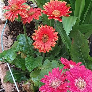 こんにちは~😊 鉢植えで楽しんだ後に地植えした ガーベラです。 地植えした庭で色鮮やかに咲いてます。