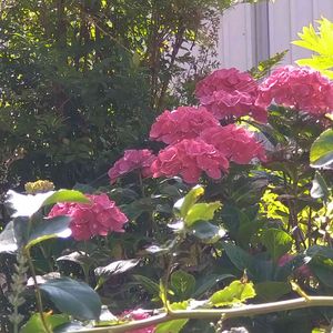 モコモコといい感じに咲いてます❣️ 梅雨☔️空にも映える色🩷です。 ブロック塀の脇に植えてます。 違う色だった気がしますが、ふた株ともこの色です❣️