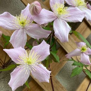 いい感じに🌸咲きました💝 去年、上の方に枝が密集してしまい、下半分がスッカスカになってしまってどうしましょう😔と、お花屋さんに相談しました。 丁寧に蔓を外してフェンスに巻き直したらとお聞きしました☺️ なーるほど❣️ うまくいきました🎶🎶 今年もありがとう💕💕