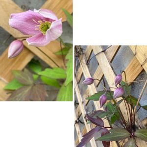 クレマチス モンタナ咲き始まってます😊 ツボミもなかなかかわいい😍💕 旧枝咲きなので、去年の枝をそのままにしていたら上の方にばかりツボミがついてます😅 ちょっとさみしい感じ💦 今年花🌸が終わったら半分くらいカット✂️してみようかなぁ🧐
