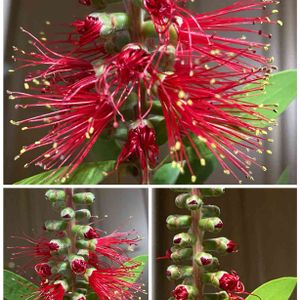 ブラシになってきました😍 おしべがピンピンとたくさん跳ねてます。先っぽに花粉が黄色くぽちぽちと目立ってます😆 花びらは見えません🙄 見れば見るほど不思議な花🌸です。🥰