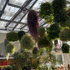 HANA・BIYORI 3🌼 スターバックスがあるエリアには、グリーンシャンデリア🌿天井からの陽射しとグリーンとで、癒しのカフェ空間でした😊