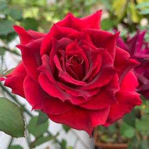 アルチーナさん!黒星病ですが、色味がきれいな赤色で咲いてくれました! 花の形も独特です。