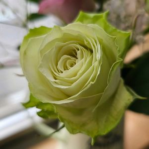 おはようございます😊 🏷️月曜日は元気色の花 スーパーで見つけたグリーンのバラ🌹 調べてみたらたぶんミントティ 🏷️月曜日にはバラを