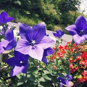 マリーゴールド 八重咲きマツバボタン 桔梗 庭が華やいでます✿゚❀.(*´▽`*)❀.゚✿