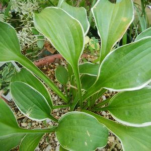 今日のお花 「黄覆輪小葉 ギボウシ」 今年はまだ花は咲きませんが葉だけでも綺麗です🌿