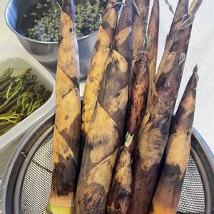 岡山県美作市の産直ショップで 真竹、山椒の実、らっきょう、蕨などなど手に入れました(6/3) 真竹は焼いて、煮て、 山椒の実は、半分をちりめん山椒にして、残りは魚の煮付けや糠床用に冷凍 らっきょうはコロナ以降、ご亭主が甘酢漬け、塩漬けと作ってくれてます🤭