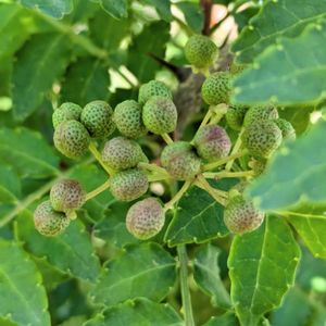 緑の実 色々🟢 クロモジ、キブシ、サンショウ、イチョウ、ウリハダカエデ 雨が降って太陽の光を浴びて、また雨が降って、晴れて☔☀☔☀ 日毎に緑が深まる季節🟢木々の若い実も目立ってきた 木曜日は木の実🏷 クロモジ◆ まだ若く、これから海老茶色、黒へと進む キブシ◉ 黄褐色から黒へ サンショウ🔴 完成形は赤くなるので、収穫するなら今だ! イチョウ🟤 言わずとしれた銀杏の幼果 ウリハダカエデ⭕ しだいに赤味を増すようになる