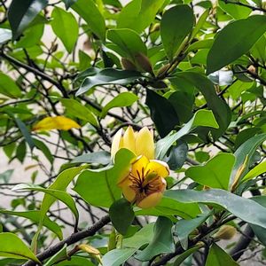 からたねおがたま モクレン科 大原美術館に行きました 『からたねおがたま』の木に花が咲いていました とっても良い香りがしました バナナのような香り、と言われてますがバナナは感じられませんでした