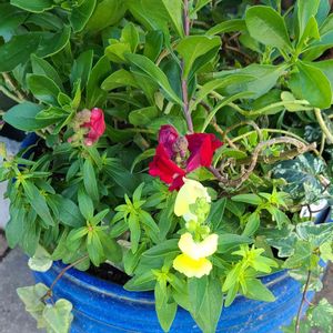 こんにちは👋😃 残った花苗を13号鉢に、 詰め込み植え付けました。 水挿しヘデラを、加えて 寄せ植えしてみました。 八重咲きストック2苗。 スイートアリッサム白 2苗。 キンギョソウ3苗。 白妙菊1苗。 ノースポール2苗。 オリヅルラン1苗。 寒さに耐えて暖かい春には、華やかに花が咲いてくれたら、嬉しい😃🎶