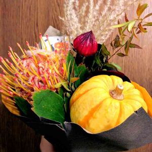 寒いのが嫌いなので、 こんなに寒いと自分の中ではもう冬ですが、 カレンダーはまだ秋なんだな〜 秋らしいブーケを買いました🎃🌾