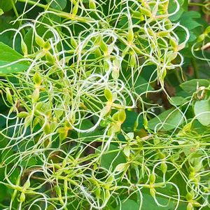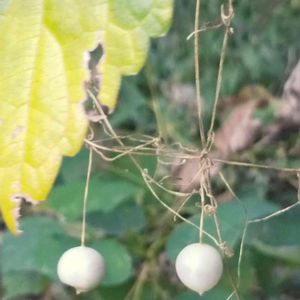 ヤマノイモ ヤマノイモの雌株に果実がたーくさん 着いていました😃 果実は熟すとはがれて 円形のオブラートにサンドされたような薄くペッタンコの種子が 風に🌬️ヒラヒラ舞います✨