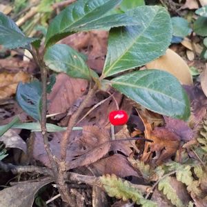 ヤブコウジ(薮柑子) サクラソウ科 常緑木本植物 🤸🤸🤸 3本見つけたから 30両!😄 🐜 🐜 🐜 どういうわけか、1個ずつしかなってな~い🤷