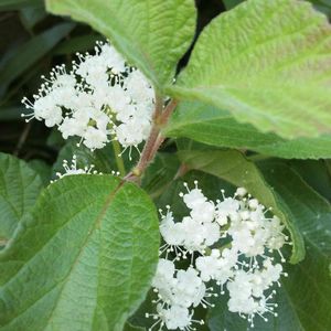 雨があがったのでちょこっと散歩🚶 雑木林の南側縁に咲いていました。 ガマズミかと思いましたが、葉脈がはっきりしていません。ざらざら感も無く 葉っぱは想像より柔らかく気持ちいい‼️🤗 🙋また行き 他の葉も触って確かめたところ、 下の方の葉はゴワゴワしておりコメント頂いたように やはりガマズミなのだと思いました😣 ご意見ありがとうございました🙇