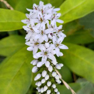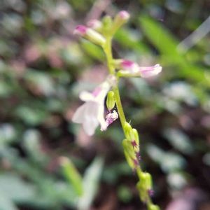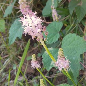 雑木林沿いの遊歩道を歩いていると オカトラノオをみつけました。 小さな白い花の集合体の房は シロギツネが尾を垂らしているようにみえました。