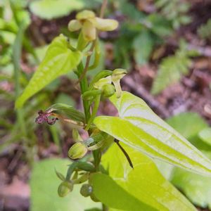 これはオオバノトンボソウでいいでしょうか?🙄 前回投稿のものから離れ、膝下程の草が生える林の縁にこんな面倒くさい状態のを見つけました。 ヤマノイモのようなツルをはずした状態のものを撮りたいのはヤマヤマでしたが🦟🦟🦟🦟🦟🦟の猛攻撃に耐えシャッター押すのがやっと😵💦でした。