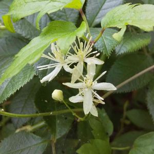 ボタンヅル(牡丹蔓) つぼみの頭が丸いボタンヅルが咲いていました。カラスウリや山吹の葉の中に見つけました😃 未だなのか、今年はなのか、花数が少ないな🙄