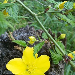 秋に見つけたときは 普通に、栽培される苺の葉のように見えました。 誰か物好きな方が植えられたのかな?と思っていました😅こんな山の中に? 先日孫と歩いていると白い花を、果実なりかけの姿も発見! AIさんにお尋ねしたら 「エゾヘビイチゴ」別名ワイルドストロベリー でした。 北海道中西部に帰化とあるので、、、、ブ、ブ、ー🙅🤔 🐦️さんでしょうか?☺️