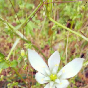 🚶♂️🚶🥀 オオアマナでしょうか? よく見ると花の中にさらに花びらがあるように見えます。が、雄しべでした😅 花びらの内側(みえてる側)は白色ですが 外側は緑色で、白い縁取りがあり清楚な感じです。 冬に何度も通ったのに全然きづきませんでした。🙄🤔