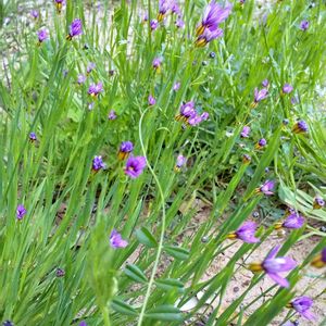 🚶 🚶♂️ ニワゼキショウ(庭石菖) が沢山咲いていました😲 こんなに~😃ってくらいです。群生まではいきません😅 アヤメ科 ニワゼキショウ属 公園や芝生でよく花を見ます。 花は見ますが扁平な茎や葉までは、、、。😅 花の名を漢字で表すとなるほどなぁアヤメに似てるわとガッテン!