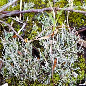 4月6日に日陰の雑木林の斜面で撮しました! 今日は少なくなっていました。 地衣類👽ハナゴケ科ヤグラゴケ類?かなぁ~😏 わかりましぇ~ん!😩 すぐそこにある小さなスモールワールド🐜 御存じの方よろしくお願いします🙇♀️⤵️