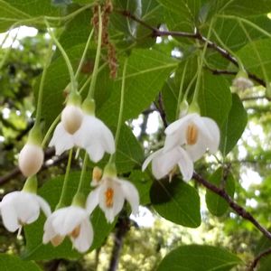 エゴノキ 雑木林に入って行くと 小道に花が落ちていて 思わず見上げると 垂れ下がった白い花が イヤリングのように ゆらゆらしている🤗