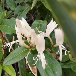 スイカズラ 甘く優しい匂いで あたしはここよ😘 と知らせてくれる 蜜を吸うツル植物と言うのが花の名の由来 咲き始めは白、翌日には黄色に変化 雑木林の外からいくつも見られました。