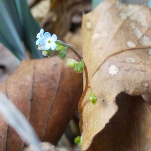 キュウリグサ(胡瓜草)🥰 こんな季節にキュウリグサ❗️ おととし初めて存在を知って恋しちゃったキュウリグサ❗️ 雑木林の縁の落ち葉🍂の中からこんにちわ🐤 😵ワチニンコ!ワチニンコ!😘