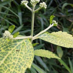 こ~んな葉っぱは はじめて😳 なんの花でしょうか? 花開いているところをと探しましたが何処に有ったかわからなくなってしまいました。🥵 お二人からヒヨドリバナ と教えて頂きました。 そしてひままりんさんの投稿からウィルス感染した葉で「キンモンヒヨドリ」とも呼ばれることが分かりました😃 うれしいでーす🙋