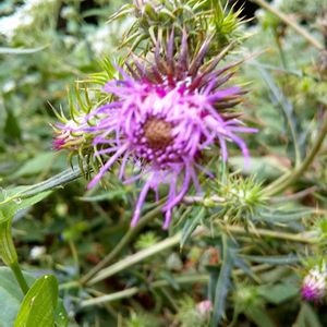 トネアザミ(利根薊) 別名:タイアザミ 😲思わず 「清志郎!」とつぶやいてしまった😅 因みに「僕の好きな先生」が好きです。 関東、東海地方に分布 草丈1.5~2m 葉の切れ込みが深く刺はいたい。 総苞片は長い刺状で開出 又は下向きに反曲する。 違っていたら教えてください🙇