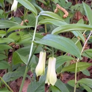 チゴユリ(稚児百合) ユリ科チゴユリ属 ニリンソウの咲く山林の中にチゴユリが群生していました。 ニリンソウはまだまだぽつぽつなのに、驚きました。 落ち葉積もる山肌にも何やらかにやら緑の若葉が生え出でて足のやり処に困るようです。 🥾 🌱🌱🌱🌱🌱🌱🥾