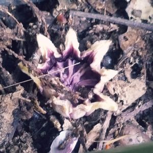 ちょっとキモいけどみてみたいカンアオイ 私の🚶所では、無理みたい🤷 でも、葉蘭ははえてるの 林の薄暗い所に、それなりのお年のが☺️ だから、今年こそ葉蘭の花を見つけるぞ!と1人で決心したのであります🤭 で、葉蘭の株元のまわりに降り積もっている枯れ葉の布団をガッシガッシと払ってみると こんなんのが出ました😅 勢い余って、紫芋のタルトのような花びらを引っ掻いて仕舞った😅 キノコバエが受粉に一役かっているそうです。 そしてカボスのような実がなるそうな🙂