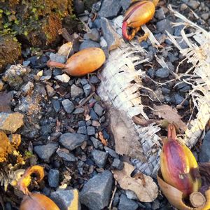 ドングリを見に行くと▶️を発見🐿️ どうやらマヤランの果実のようです! 初めて見ました。 ◀️が9月に投稿したマヤランの花