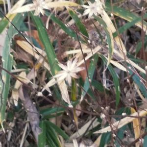 オニドコロの果実が 花のように見えました😅 種子が覗いてます。 思わぬところにありました。草やぶから出てくると👖にはナイキ☑️のヌスビトハギがびっしり、 👟にはセンダングサの種子が刺さりチクチク😥
