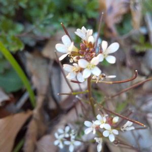 雑木林の 木洩れ日射す小径に 緑の葉っぱをこんもりとさせたタネツケバナが 咲いていました😃 赤みを帯びた花にキュンキュンです🥰