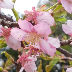 里山を取り入れた(?)公園に桜が咲いていました😃 花は盛りを過ぎたようで残された蕊が目立ちます。 葉っぱもかなり出てきています。 ナニ桜かなーと呟きながらアングルをさがしていると (・。・)ホー ホケ キョ! なんと鶯の初音です😳 🤸 🤸 🤸 🤸 🤸