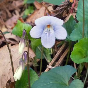 山林の中、伐採されて空がみえる落ち葉フカフカの斜面に 限りなく白に近いブルーの丸い花びらのスミレが咲き出していました☺️ 🤸 🤸 🤸 スミレもさっぱり😅🤷 電気以外の暖房器具何をお使いですか? お暇があったら教えてね🙇