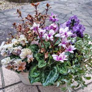✿.。*♡✿.。*♡本日の我が家のお花たち✿.。*♡✿.。*♡ ❀P.1-3庭人さん苗 P.1-2暖かくなり色がより青くなりました💙 P.3まん丸なお顔です。 ❀プルモナリア‘シュリンプ オン ザ バービー' (3か4年目) 水玉模様の葉が特徴的なプルモナリアです。このコが咲くと春が来たなーっと実感します🌸 ❀シクラメンジックス(4年目) 去年と一昨年の猛暑でだいぶ球根が傷んでしまいました。それでも今年は花数が増えてくれました🙌ジックスは強いですね~。